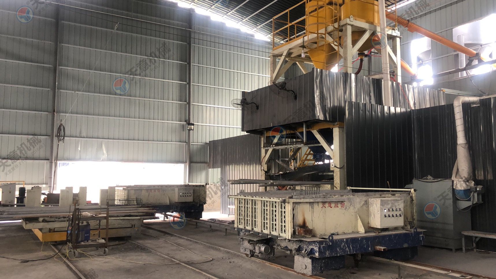 9、生產(chǎn)線設(shè)有封閉式自動(dòng)噴灑脫模劑裝置(減少了人工現(xiàn)場(chǎng)噴灑作業(yè)及脫模劑的浪費(fèi),生產(chǎn)觀場(chǎng)更加節(jié)約環(huán)保)。